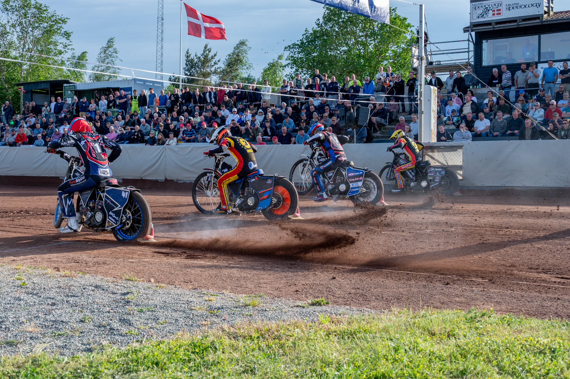 Matchen på Onsdag i Fjelsted, og dagen efter i Slangerup, er en direkte duel mellem de 2 førende hold i Ligaen, og meget afgøres i de 2 matcher i næste uge. Vi sigter højt i Fjelsted, da vi mener at vi har holdet til at køre med om de øverste pladser i år. På Onsdag har vi behov for, at eventuelle ferieplaner går omkring vores hjemmebane, for støtten fra lægterne er uvurderlig for såvel klubben, som hjælpere og ikke mindst kørerne. Vi håber I vil bruge nogle timer med os, så vil vi gøre alt for at give jer en fuldstændig vild dyst om førstepladsen mod holdet fra djævleøen. Vi glæder os til på onsdag, og håber vi ses.